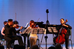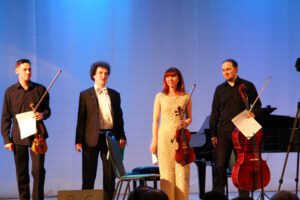 Первое отделение было посвящено фортепианному квартету № 3 до минор, несомненному шедевру Брамса. Его исполнили для слушателей концерта друзья хора «Распев» Павел Мумятов, Ольга Кожурина, Владислав Провотарь и Даниил Контуашвили. Грустные, тревожные ноты сменялись страстью и сомнением. Углубленный трагизм, так свойственный Брамсу, вновь прозвучал в изумительной красоты музыке, зачаровав всех зрителей.