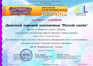 Детский хоровой коллектив «Piccolo canto»принял участие во Всероссийском конкурсе-фестивале «Серпантин искусств».