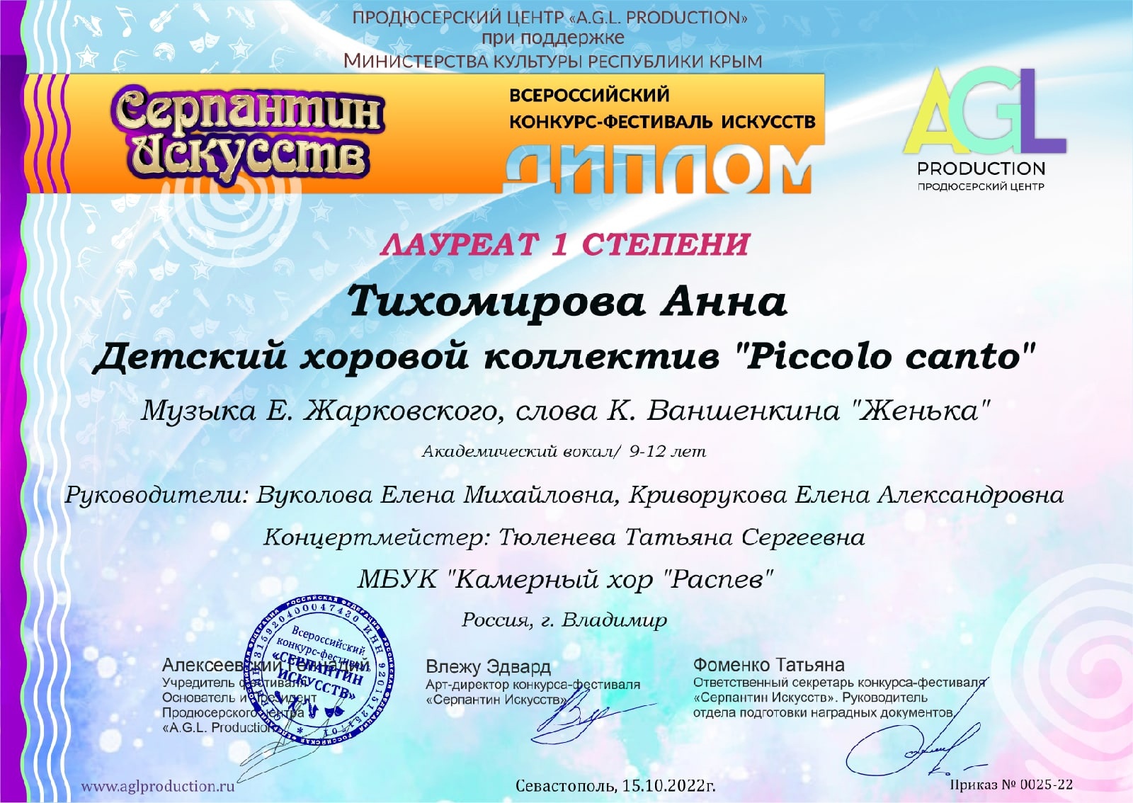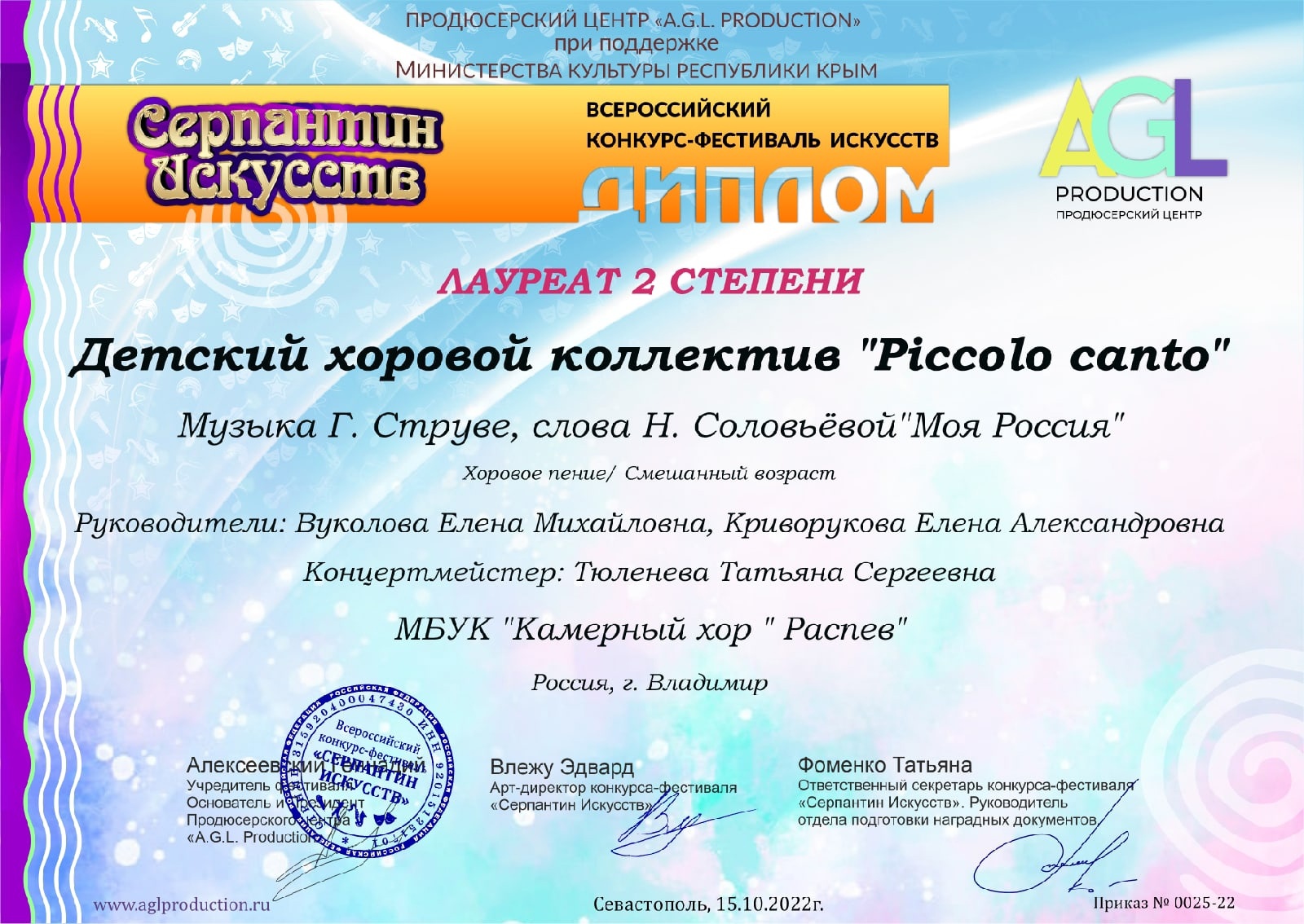Детский хоровой коллектив «Piccolo canto»принял участие во Всероссийском конкурсе-фестивале «Серпантин искусств».