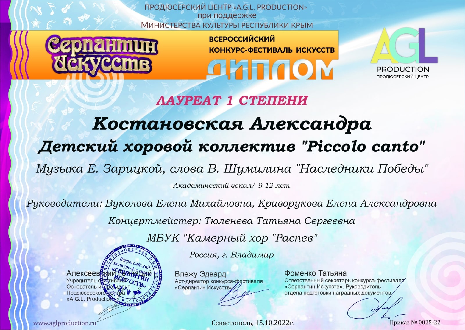 Поздравляем Костановскую Александру и Тихомирову Анну, которые принимали участие в номинации » Академический вокал» и стали лауреатами 1 степени. Желаем дальнейших творческих успехов!