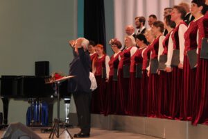 За дирижерским пультом — художественный руководитель и главный дирижёр, Заслуженный деятель искусств России, профессор Наталья Колесникова.
