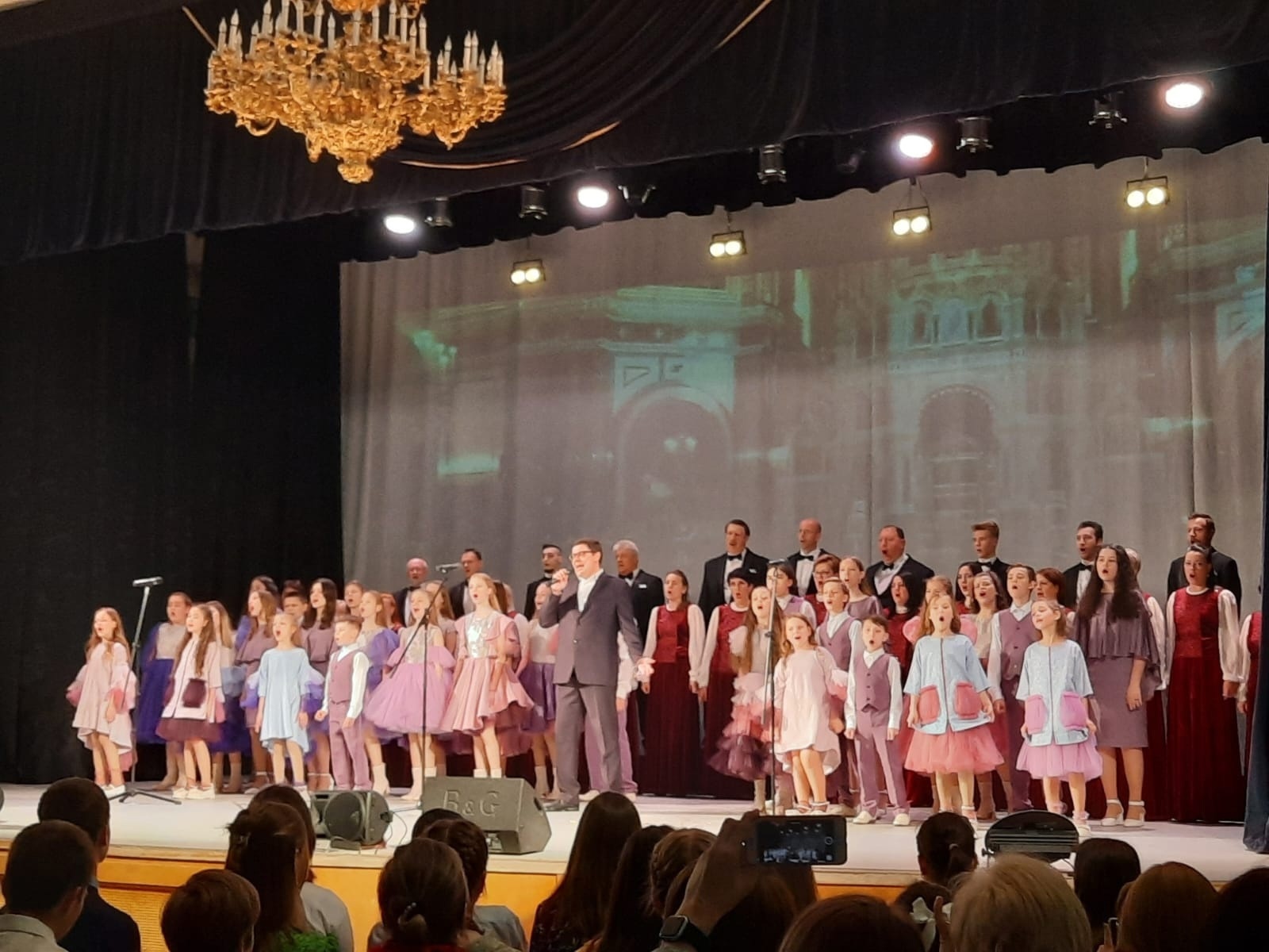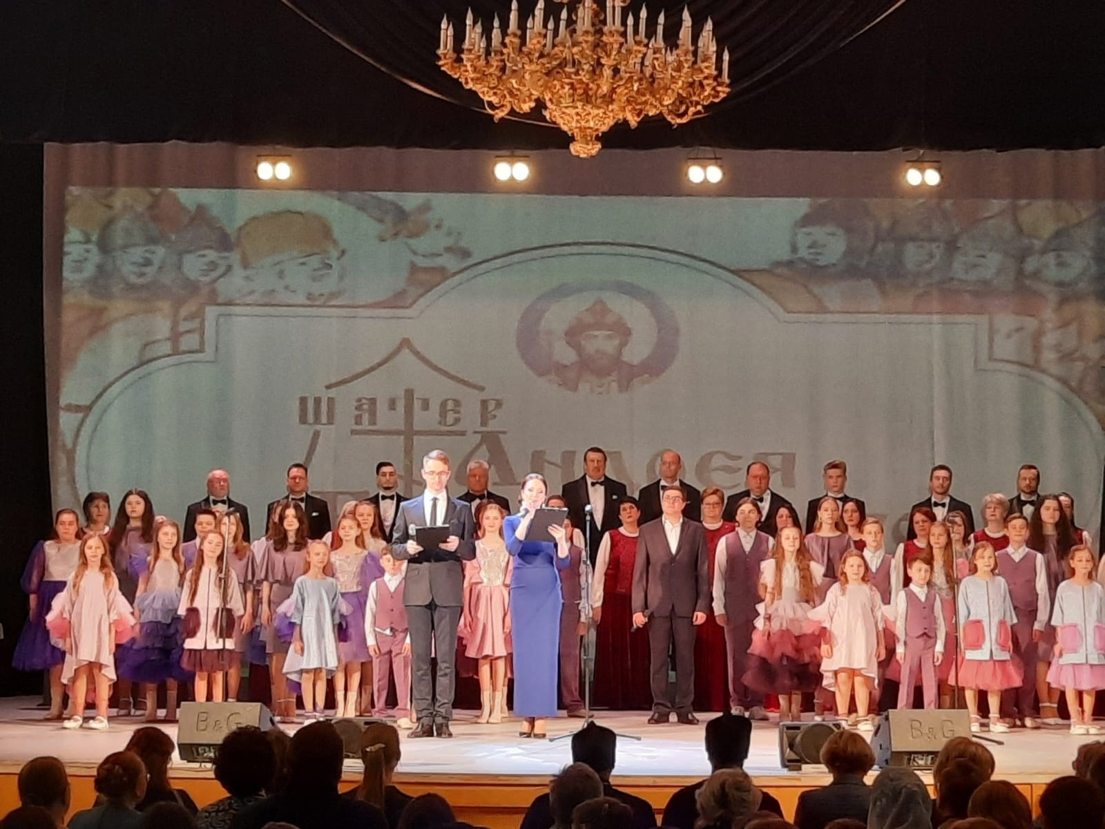 И вновь со сцены прозвучала песня «Мой храм» в исполнении двух коллективов: Театра песни «Калейдоскоп» г. Владимир и камерного хора «Распев».