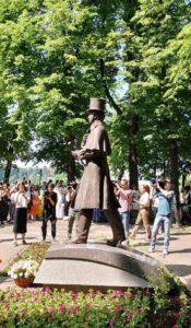 Немного выше трёх метров, статный красавец теперь прогуливается в Липках. Кажется,вот сейчас сойдёт с постамента из питерского гранита и ступит в реальность нашего города. Бронза скрывает пленительный голубой цвет его глаз, но мы-то знаем, сколь очарователен был этот взгляд!