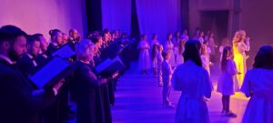 Совместно с театром песни «Калейдоскоп» камерный хор «Распев» исполнил новые композиции. посвящённые 80-летию Победы в Великой Отечественной войне.