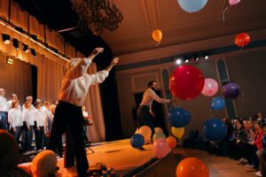 В конце премьерного концерта слушателей ждал ещё один небольшой, но приятный и совсем детский сюрприз. С балкона и со сцены в зал вдруг полетели яркие надувные шары, вызывая улыбки взрослых и радостный смех детей.
